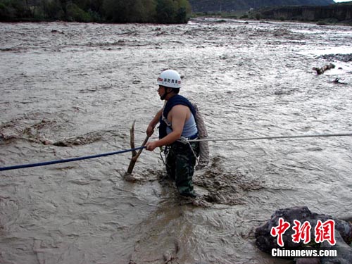 救援人員徒步翻山涉水營(yíng)救被困民眾