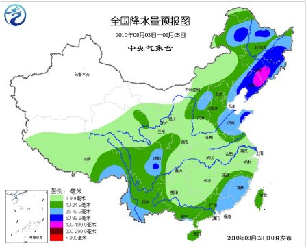 中新網(wǎng)8月2日電 據(jù)中央氣象臺預(yù)報,未來10天,中國主要降雨將出現(xiàn)在華北、東北、黃淮東部、西南地區(qū)東部、江南東南部、華南等地,降雨量一般有40-80毫米,其中東北地區(qū)東部和南部、華南沿海和東南沿海的部分地區(qū)有100-180毫米,局部地區(qū)有200-300毫米;與常年同期持平或偏多3-7成,局部偏多1-2倍。