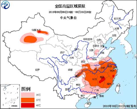 中央氣象臺(tái)2010年8月3日10時(shí)繼續(xù)發(fā)布高溫橙色預(yù)警: