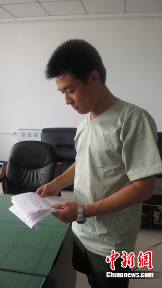 中新網(wǎng)吉林8月10日電(記者 蒼雁)吉林一名消防士兵在抗洪一線利用休息時間寫下篇篇日記。8月10日,記者看到了這本日記,上面不僅詳細記錄了消防官兵在一線抗擊洪水英勇事跡,也還原了洪水肆虐的驚險場面。據(jù)了解,這名士兵僅從軍校畢業(yè)1個月,就投身抗洪戰(zhàn)場。
