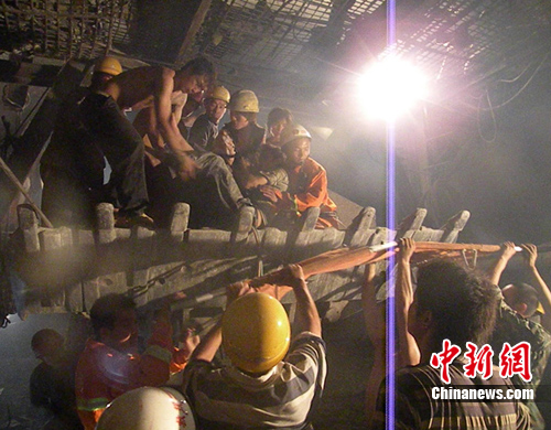 中新網(wǎng)汶川8月11日電(劉忠俊 李濤)11日凌晨4時32分,四川汶川縣草坡鄉(xiāng)草坡2號橋旁一在建隧道發(fā)生垮塌,一工人被巨石壓于其下,經(jīng)過消防官兵2個多小時的緊張救援被壓工人成功獲救。