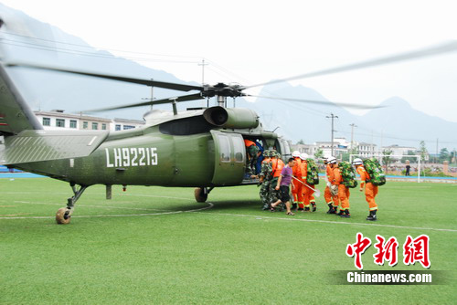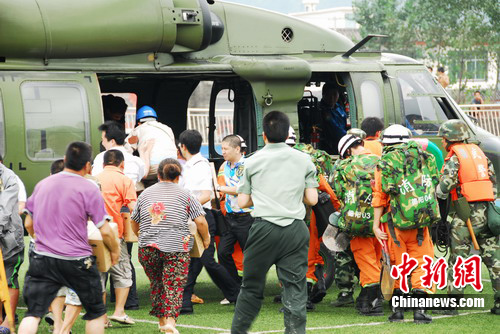 中午12時05分,空軍陸航團(tuán)派出兩架直升飛機(jī)前來支援,深入災(zāi)區(qū)探測道路情況和人員被困情況。從下午1點(diǎn)14時45分至下午4點(diǎn),消防支隊(duì)共派出30人,由參謀長徐昌榮帶隊(duì)分六批次搭乘空軍陸航團(tuán)飛機(jī)帶上破拆工具、生命探測儀、照明工具、水上救援工具、安全救生繩索等已安全到達(dá)清平災(zāi)區(qū)。30名消防官兵到達(dá)災(zāi)區(qū)后,立即設(shè)立了消防部隊(duì)搶險救援指揮部,指揮一線官兵積極投入救援工作,爭分奪秒營救被困群眾。