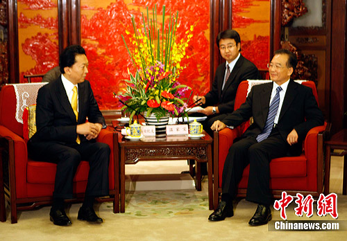中新社北京8月17日電(記者 余湛奕)中國國務(wù)院總理溫家寶17日下午在中南海紫光閣會見日本前首相、民主黨前黨首鳩山由紀(jì)夫率領(lǐng)的民主黨議員代表團(tuán)。