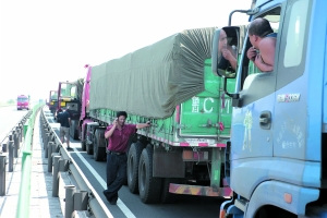 在興和收費(fèi)站和集寧收費(fèi)站,開始限制大型貨車進(jìn)入京藏高速進(jìn)京路段。但是仍有從涼城、呼和浩特等地駛來(lái)的貨車不斷延長(zhǎng)堵車隊(duì)伍。