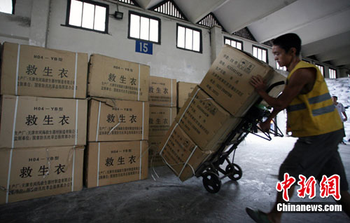 中新網(wǎng)成都8月20日電 (記者劉忠俊)21日上午10時35分,國家防總緊急調(diào)撥80艘沖鋒舟,40支橡皮舟、120臺船外機、1萬件救生衣、4000片鉛絲籠網(wǎng)片、4000個鋼絲網(wǎng)兜、500盞查險燈等搶險救災(zāi)物資的“搶17/18次”救災(zāi)專列抵達四川成都火車東站。
