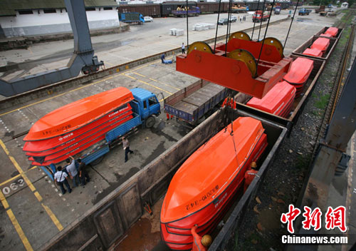 11:20分左右,隨著龍門吊車、裝卸車的轟鳴聲,第一輛裝著5艘沖鋒舟的汽車開出了東站,緊急運往眉山抗洪一線。(完)