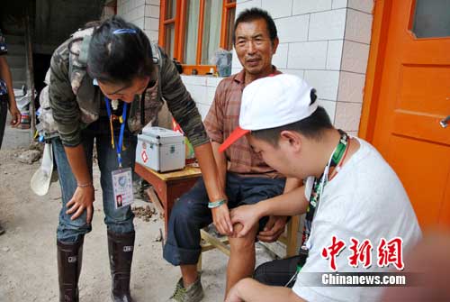 記者正在與薛新民保交談時(shí),來自銀川的劉志和北大外科系的王健幾個(gè)自愿者剛好來到了,劉志拿著保健箱為薛新民保檢查了一下身體,他的腿有點(diǎn)痼疾外,身體還算健康。