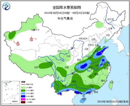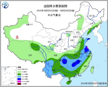 25日20時(shí)至26日20時(shí),新疆西部、青海南部、西藏、內(nèi)蒙古中部的部分地區(qū)、吉林東部、遼寧東部、黃淮大部、江淮、江漢大部、江南、華南、西南地區(qū)等地有小到中雨或陣雨,其中,遼寧東部、山東半島、江蘇、安徽中南部、浙江西部、江西大部、湖南大部、湖北西南部、重慶中南部、貴州東部、川西高原南部、云南中西部和南部、廣西西南部等地有大雨或暴雨,江蘇中部局地有大暴雨;上述地區(qū)局部并伴有短時(shí)雷雨大風(fēng)等強(qiáng)對流天氣。新疆東部及南疆盆地、甘肅西部、內(nèi)蒙古西部有5~7級風(fēng),遼寧、山東半島有4~6級風(fēng);南疆盆地的部分地區(qū)有揚(yáng)沙或浮塵天氣。渤海有5~6級東北風(fēng);黃海中北部有6~7級旋轉(zhuǎn)風(fēng);北部灣有5~6級西南風(fēng)。