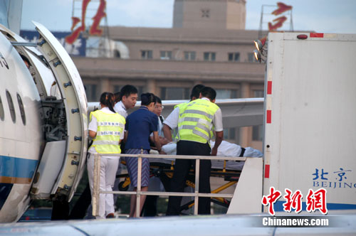 中新網(wǎng)北京8月28日電(張正尤) 8月27日18時15分,10名伊春“8•24”空難傷員飛抵首都國際機場。被在此等候的北京急救中心12輛急救車火速轉(zhuǎn)運到北京大學第三醫(yī)院、北京積水潭醫(yī)院救治。每家醫(yī)院安排收治5名傷員,傷員隨行家屬來京照顧傷員。