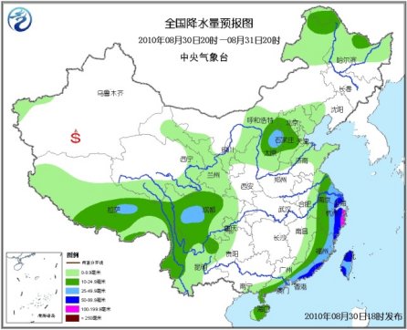 30日20時(shí)至31日20時(shí),新疆南疆西部、西藏大部、青海東部和南部、西北地區(qū)中東部、內(nèi)蒙古中西部和東北部、黑龍江大部、遼寧西部、華北大部、黃淮東部、江淮東部、江南東部、華南東部和南部、四川大部、重慶西部、貴州西北部、云南大部等地有小到中雨或陣雨,其中,川西高原中部、山西東北部、江蘇東南部、上海、浙江中東部、福建東部沿海、廣東東部沿海、臺灣等地有大雨或暴雨;浙江東部的局部地區(qū)有大暴雨;上述部分地區(qū)并伴有短時(shí)雷雨大風(fēng)等強(qiáng)對流天氣。新疆南疆盆地南部的部分地區(qū)有揚(yáng)沙或浮塵天氣,新疆南部、內(nèi)蒙古東部、東北北部等地有4~5級風(fēng)。受“獅子山”和第8號熱帶風(fēng)暴的共同影響,東海南部海域、南海北部海域、臺灣海峽、臺灣以東洋面的風(fēng)力將有6~8級,陣風(fēng)可達(dá)9~10級,其中南海北部部分海域的風(fēng)力將有9~11級,陣風(fēng)可達(dá)11~12級。