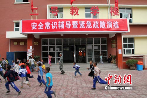 中新網(wǎng)舟曲9月1日電 (劉鵬)1日下午,是甘肅舟曲災(zāi)區(qū)新學(xué)期開(kāi)學(xué)的日子,蘭州軍區(qū)某集團(tuán)軍舟橋團(tuán)的教官們采取理論輔導(dǎo)、觀看示意圖、動(dòng)作練習(xí)、模擬演練等方式,對(duì)舟曲城關(guān)小學(xué)600多師生展開(kāi)了一場(chǎng)緊急避險(xiǎn)演練培訓(xùn)。演練培訓(xùn)包括火災(zāi)、洪災(zāi)、地震、泥石流等災(zāi)害發(fā)生時(shí)怎樣避險(xiǎn)、逃生等。