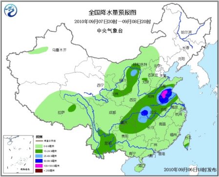 中新網(wǎng)9月6日電 據(jù)中央氣象臺報道,未來三天,全國降水范圍較大,其中,山東中南部、安徽北部、江蘇北部、河南東部和南部、湖北中西部、重慶中東部、貴州北部、湖南西北部以及川西高原東南部、四川東部、甘肅南部、陜西西南部、內(nèi)蒙古河套地區(qū)、河北西南部等地有大雨或暴雨,湖北西南部、河南中部偏東地區(qū)、山東西南部、安徽北部、江蘇西北部等地局部有大暴雨,上述部分地區(qū)并伴有短時雷雨大風(fēng)等強對流天氣。