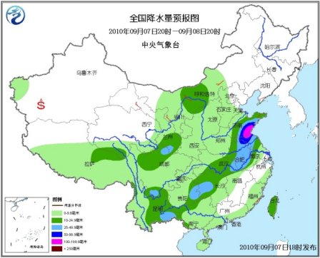 7日20時至8日20時,新疆西南部、青海南部和東部、西藏中東部、西北地區(qū)中東部、內(nèi)蒙古中部偏西地區(qū)、華北大部、黃淮、江淮、江漢、江南中西部和北部、華南大部、西南等地有小到中雨或陣雨,其中山東中南部、安徽大部、江蘇北部和西部、湖北東部、湖南中部偏西地區(qū)、貴州東部、甘肅東南部、川西高原北部、云南東南部等地有大雨或暴雨;山東東南部和江蘇北部的局部地區(qū)有大暴雨;上述部分地區(qū)并伴有短時雷雨大風(fēng)等強對流天氣。內(nèi)蒙古中西部有4~6級風(fēng);南疆盆地的部分地區(qū)有揚沙或浮塵天氣。臺灣海峽有5~7級東北風(fēng);臺灣以東洋面有6~8級大風(fēng);臺灣以南海域有5~7級旋轉(zhuǎn)風(fēng);南海東北部海域?qū)⒂?~7級偏西風(fēng)。另外,渤海、渤海海峽將有5~7級、陣風(fēng)8級的東北風(fēng)。