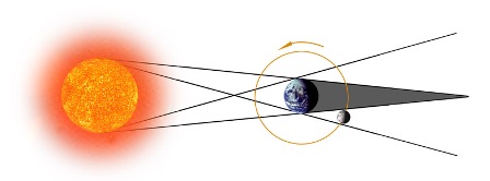 月食的過程和日食的過程有些不同。月球自西向東運(yùn)動(dòng),它在東邊緣先接觸地影,因此月食總是從月輪的東邊緣開始。與日全食一樣,月全食分為相同的5個(gè)階段(初虧、食即、食甚、生光、復(fù)圓),從食即到生光的全食時(shí)間長達(dá)1小時(shí)以上。朝向月球的半個(gè)地球上見到的月食的時(shí)刻和情況完全一樣,正如舞臺(tái)上的燈泡漸暗至熄滅的過程,對(duì)于劇場(chǎng)內(nèi)的所有觀眾都是一樣,并且會(huì)同時(shí)看到。