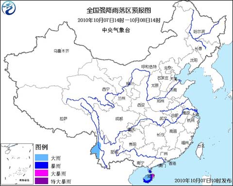 10月7日14時(shí)到8日14時(shí),海南大部、廣東中西部沿海及雷州半島、云南西部的部分地區(qū)等地有大雨或暴雨,其中,海南東北部的部分地區(qū)有大暴雨。