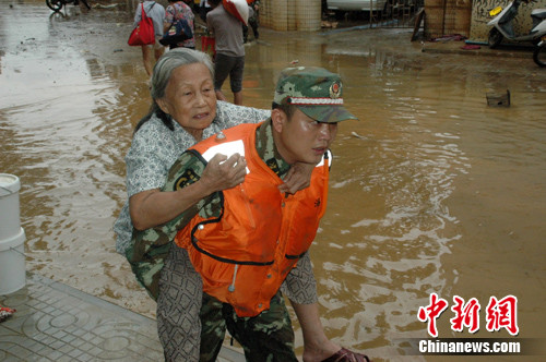 洪水退后,文昌市被淹居民已陸續(xù)回到家中。10日上午,海南邊防總隊(duì)文昌邊防支隊(duì)駐清瀾執(zhí)勤點(diǎn)的海警二支隊(duì)1003艦共100余名官兵,攜帶鐵鍬、掃帚等工具,來(lái)到洪水浸泡過(guò)的文城鎮(zhèn),清理道路淤泥垃圾,疏通下水管道,幫助群眾搬運(yùn)家電家具,協(xié)助司機(jī)推拉路邊拋錨車輛。9時(shí)許,得知文城鎮(zhèn)一棟樓房中有一對(duì)七旬老夫妻被困家中,身體虛弱急待救援,邊防官兵立即趕了過(guò)去。
