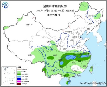 中新網(wǎng)10月13日電 據(jù)中央氣象臺預(yù)報,未來三天,中國南方大部地區(qū)將以陰雨天氣為主,其中,四川南部、貴州北部、云南西北部、湖南北部、湖北南部、江西東北部、安徽南部、浙江北部、海南大部、臺灣東部等地有大雨或暴雨,上述地區(qū)局部并伴有短時雷雨大風等強對流天氣。此外,新疆西部山區(qū)、西藏中東部、青海東部和南部、內(nèi)蒙古東北部、東北中北部、甘肅南部、川西高原北部等地還將有小到中雨(雪)或雨夾雪天氣。