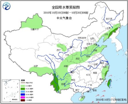 中新網(wǎng)10月17日電 據(jù)中央氣象臺(tái)預(yù)報(bào),受冷暖空氣共同影響,未來三天,新疆北部、西藏中東部、內(nèi)蒙古中部、東北大部等地將有小到中雨(雪)或雨夾雪,西北地區(qū)東部、華北、黃淮大部、西南地區(qū)等地有小到中雨,其中,云南北部、四川南部、貴州北部等地的部分地區(qū)有大雨,局地有暴雨。另外,今天,海南大部仍有大到暴雨,局地有大暴雨。