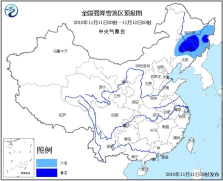 中新網(wǎng)11月11日電 中央氣象臺11月11日18時發(fā)布今冬首個暴雪藍色預(yù)警: