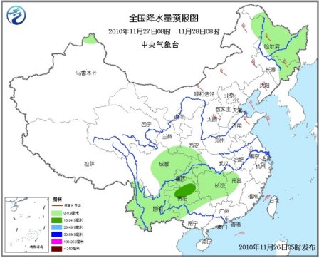 27日08時至28日08時,內(nèi)蒙古東北部、黑龍江大部、吉林東部等地有小到中雪(雨)或雨夾雪,其中黑龍江中東部的部分地區(qū)有大雪;西南地區(qū)大部、陜西南部、湖北西南部、湖南、江西西部、廣西北部等地有小雨或陣雨,貴州北部有中雨。內(nèi)蒙古中東部、華北東部、東北、黃淮東部等地有4~6級風(fēng)。黃海中北部有6~7級、陣風(fēng)8~9級的西北風(fēng);臺灣海峽、臺灣以東洋面和以南海域、南海大部有5~7級東北風(fēng)。