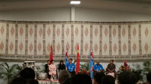 習(xí)大大說(shuō)完,斐濟(jì)原住民向習(xí)大大夫婦表示感謝。