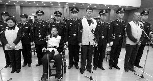 上午8時,法庭開始公開審理,可容納400人的大審判庭內(nèi)座無虛席。原三鹿集團董事長田文華、副總經(jīng)理王玉良、副總經(jīng)理杭志奇、原奶事業(yè)部總經(jīng)理吳聚生4名高管出庭受審。其中,王玉良坐輪椅出庭。以單位犯罪成為被告的三鹿集團,則由工會主席冉偉光作為訴訟代表人出庭。
