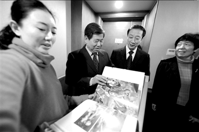 昨天下午5點(diǎn)30分左右,港澳委員陸續(xù)到會(huì)報(bào)道。市政協(xié)主席陽安江,北京市委常委、統(tǒng)戰(zhàn)部部長牛有成來到港澳委員下榻的酒店,慰問遠(yuǎn)道而來的港澳委員。來到市政協(xié)委員、澳門國際銀行常務(wù)董事葉啟明的房前,看到他只穿一件襯衣,陽安江主席關(guān)切地說:“北京現(xiàn)在是三九天,要注意保暖啊!笔姓䥇f(xié)委員、香港宇一畫院院長劉浩眉拿出她和父親共同完成的反映北京奧運(yùn)會(huì)的畫冊(cè),贈(zèng)給本次大會(huì)。