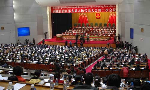 1月14日早上9點(diǎn)40分,西藏自治區(qū)九屆人大二次會議在拉薩隆重開幕。西藏自治區(qū)黨委副書記、自治區(qū)人大常委會主任列確主持會議。自治區(qū)黨委副書記、自治區(qū)主席向巴平措做《政府工作報(bào)告》。(韓連啟)