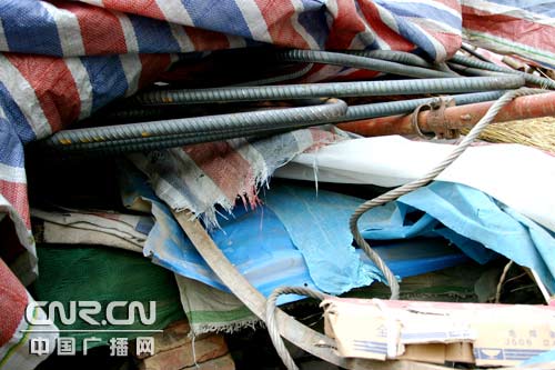 記者在事故現(xiàn)場看到,看到大約數(shù)噸重的鋼筋砸在了工棚上,而且正好砸在了工人們睡覺的床上。衣物、洗漱用品、沒有吃完的飯菜散落一地,僅從現(xiàn)場的情況看,當時在這里睡覺的工人就是兇多吉少。兩名被壓工人送往醫(yī)院后,因搶救無效死亡。