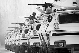 車隊啟動了。一路上,沿途不斷傳來槍聲和爆炸聲,伊拉克警察和美軍車隊不時從身邊疾馳而過。席栓柱和戰(zhàn)友們在車內(nèi)頭戴鋼盔、身穿防彈衣,手指頭一刻也不離開扳機,眼睛全神貫注地搜索著窗外每一個可疑情況。
