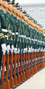 中國人民解放軍陸?杖妰x仗隊主要擔負迎送外國元首、政府首腦、軍隊高級將領及紀念、慶典等重大國事活動的儀仗司禮任務。禮儀是一個國家文化的精華,軍人執(zhí)行的國禮、軍禮更是一種精粹。三軍儀仗隊建隊以來,先后圓滿完成了外國首腦訪問,香港、澳門回歸政權交接儀式升國旗,奧運會、殘奧會開閉幕式國旗升降、頒獎等3000多次儀仗司禮任務,被中央軍委授予“軍旅標兵”榮譽稱號,贏得了國內外公眾和輿論的廣泛贊譽。朱民、劉桂利、張力攝影報道