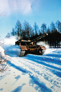 “‘?dāng)场粋(gè)營(yíng)的兵力向我指揮所進(jìn)犯,命你部迅速出擊!”正在野外進(jìn)行冬季適應(yīng)性訓(xùn)練的沈陽(yáng)軍區(qū)某裝甲團(tuán)突然接到上級(jí)命令。坦克一營(yíng)官兵用燃油加熱器快速對(duì)水箱和油箱進(jìn)行加溫。不到10分鐘,鐵甲戰(zhàn)車(chē)卷著雪浪向茫茫林海深處駛?cè)ァ?