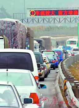 前天下午,京珠高速湖南宜章段因收費忙而出現(xiàn)長達7公里的堵塞車龍,在永興段又因為事故而堵車長達7公里左右。湖南省政府于當(dāng)天下午3時50分開始一直到當(dāng)天深夜連續(xù)5次在京珠高速小塘站對所有堵塞車輛實施間斷免費放行措施,致使京珠北南行即湖南往廣東方向瞬間車流量激增。