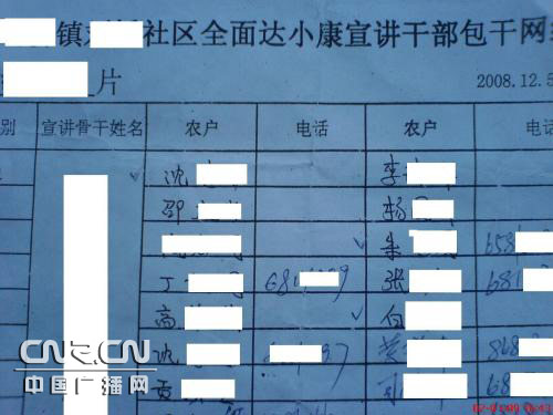 據(jù)村民說,為了順利通過小康驗(yàn)收,鎮(zhèn)里、村里開了三四次會(huì),干部們層層“承包”,挨家挨戶到每個(gè)有電話的村民家進(jìn)行動(dòng)員,保證調(diào)查時(shí)不說錯(cuò)話。對(duì)那些按照標(biāo)準(zhǔn)答案說好話的村民,進(jìn)行少則百元多則上千元的獎(jiǎng)勵(lì)。當(dāng)?shù)刂行W(xué)還專門給學(xué)生放了一天假,老師要求學(xué)生把標(biāo)準(zhǔn)答案背熟記牢,貼在電話機(jī)旁邊,協(xié)助家長(zhǎng)應(yīng)對(duì)小康驗(yàn)收電話。