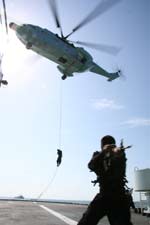 “我‘華光’號(hào)貨輪在南海某海域遭劫持,你部速組成海上反恐機(jī)動(dòng)編隊(duì),采取有效行動(dòng),確保船只和人員安全……”南海艦隊(duì)某基地受令指揮的海軍部隊(duì)組織海上反恐戰(zhàn)斗在南海打響。