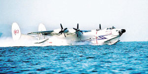 這是一架外形奇特的飛機(jī):機(jī)翼兩側(cè)各垂有一個(gè)巨大的橄欖球狀物,機(jī)腹是傾斜的切割面形狀,好似巨輪的船身?吹接浾咭荒樢苫,值班領(lǐng)導(dǎo)、政委張汝翼為記者指點(diǎn)迷津:“這就是我們部隊(duì)號(hào)稱‘海天鯤鵬’的水上飛機(jī),是全軍僅有的一種特殊機(jī)種,不僅能航行在遼闊的江河湖海,還能馳騁在藍(lán)天之上,機(jī)翼兩側(cè)配有保持浮力和平衡的‘浮筒’……”