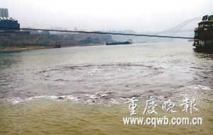 昨上午11時(shí)許,朝天門兩江交匯處約6平方米范圍的水域猶如開了鍋的水,突然接連冒泡。這一奇觀引來(lái)不少市民圍觀,以為是江里游來(lái)了大魚。沸騰的水面散發(fā)出陣陣惡臭,熏得圍觀者躲避不及。