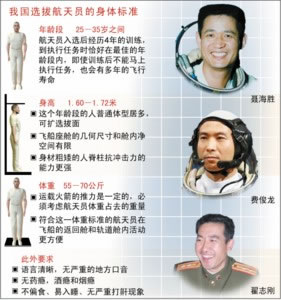 航天專家介紹,此類航天員選拔主要針對我國載人航天戰(zhàn)略第三步,為建造長期有人照料的發(fā)射空間站做選拔,最早或于2015年前飛天。與第一批航天員選拔標(biāo)準(zhǔn)相比,此次選拔將更側(cè)重對文化知識水平的考查,同時極有可能出現(xiàn)女航天員的身影。在不遠(yuǎn)的將來,我國航天員中也將出現(xiàn)科學(xué)家的面孔。