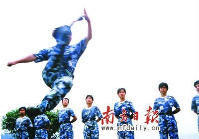 記者采訪了解到,該部隊(duì)組建伊始,是一個(gè)由醫(yī)院護(hù)士,總機(jī)班女兵,演出隊(duì)女兵拼湊起來的“雜牌”軍。自從該旅提出要把女兵隊(duì)由表演隊(duì)鍛造成戰(zhàn)斗隊(duì)后,這群女兵便開始了新的征程。五公里、戰(zhàn)術(shù)、障礙等訓(xùn)練科目一個(gè)不落,舞劍、捕獲等特色科目齊頭并進(jìn),就連男兵很少練齊全的陸上駕駛、海上駕舟、空中突降等特種科目也全納入了她們的訓(xùn)練內(nèi)容。