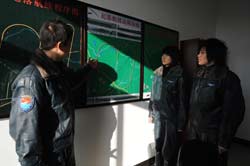 采訪中,該飛行學院領導向我們介紹,空軍首批女殲擊機飛行學員,是2005年9月我國按照“2.5+1.5”飛行學員培訓方式,從全國12個省、20余萬名應屆女高中畢業(yè)生中選取的,共35人。經(jīng)過空軍航空大學兩年半基礎教育訓練和兩所飛行學院一年多初教機、高教機訓練,目前已有16名學員通過了各種考試,并成功實現(xiàn)了單飛。這標志著中華民族擁有女殲擊機飛行員的偉大夢想已化作現(xiàn)實,共和國鋼鐵長城又平添了一支新生的藍天屏障。