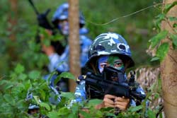 何新瑛指導(dǎo)員向我們介紹,面對未來戰(zhàn)場的惡劣環(huán)境,面對兩棲偵察女兵隊所擔(dān)負(fù)的特殊任務(wù),其訓(xùn)練的難度強度是一般人難以想像的。作為一名女子陸戰(zhàn)隊員,每天除完成正常的訓(xùn)練課目外,在體能上必須堅持做到“五個一百”,即100個俯臥撐,100個仰臥起坐,100個蹲下起立,100個曲臂伸,100次往返跑;同時還要綁著10多斤的沙包練5公里越野。這些最基本的體能訓(xùn)練要求,使每個姑娘都面臨著生理和心理的考驗。盡管每年新入伍的戰(zhàn)士都有累得掉眼淚,但在部隊的教育以及戰(zhàn)友的關(guān)心幫助下,姑娘們都很堅強,憑著忠誠于黨、獻身使命的崇高追求和熾熱情懷,一無往顧地沖在軍事斗爭準(zhǔn)備的第一線。