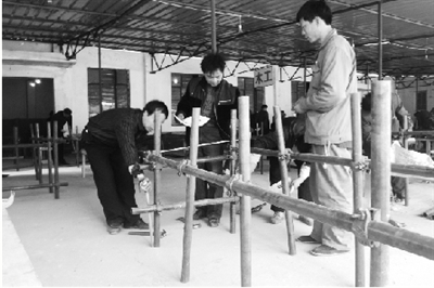 昨日13時30分,離開考時間還有半個多小時,已有100多名考生等在鄭州八方人才資源開發(fā)有限公司考試培訓基地院內了。考場就設在院內的操作教室內,地上擺了不少的鋼管、木料、磚塊和沙灰等建筑材料。當天要進行的是木工、模板工和砌磚工的考試。