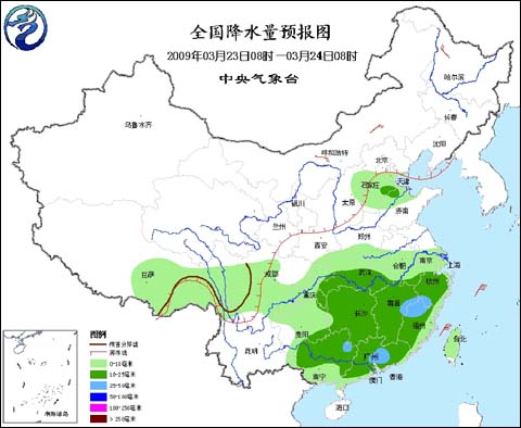 中新網(wǎng)3月23日電 據(jù)中國氣象局網(wǎng)站消息,中央氣象臺(tái)2009年3月23日06時(shí)發(fā)布未來三天天氣預(yù)報(bào):蒙古地區(qū)不斷有冷空氣東移南下影響我國中東部,未來三天,西北地區(qū)北部和東部、內(nèi)蒙古大部、東北、華北、黃淮等地將先后有4~6級(jí)偏北或偏東風(fēng),24日-25日,上述地區(qū)氣溫將下降6~8℃,局部地區(qū)降溫可超過10℃。我國東部海區(qū)將先后有6~8級(jí)東北風(fēng)。
