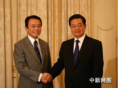 胡錦濤說,很高興和麻生首相在倫敦再次見面。去年亞歐會議和APEC會議期間,我們在北京和利馬見了面,就進一步發(fā)展中日戰(zhàn)略互惠關系深入交換意見,達成重要共識。