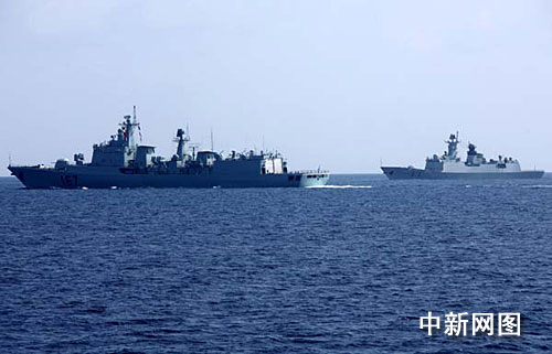 中新網(wǎng)4月13日電 據(jù)中央電視臺(tái)報(bào)道,中國(guó)海軍兩批護(hù)航艦艇編隊(duì)今日正式會(huì)合,并舉行了簡(jiǎn)短莊重的會(huì)合儀式。