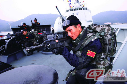 2005年,“和平使命—2005”中俄聯(lián)合軍演正式在俄羅斯的符拉迪沃斯托克和我國山東半島及附近海域拉開帷幕,為期八天的演習跨越兩國陸、海、空域,共分“海上封鎖作戰(zhàn)、兩棲登陸作戰(zhàn),強制隔離作戰(zhàn)”三個階段,向外界展示了強大的綜合作戰(zhàn)能力,顯示人民海軍與外國海軍合作的層次、規(guī)模和難度不斷提高。