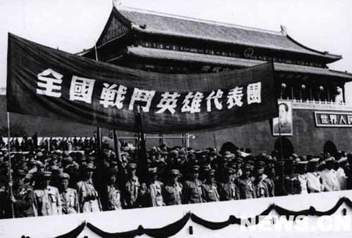 游行隊(duì)伍行進(jìn)了三小時(shí)又二十五分鐘之久才全部從檢閱臺(tái)前通過。慶祝大會(huì)于下午四點(diǎn)二十五分結(jié)束。(新華社1950年10月1日訊)