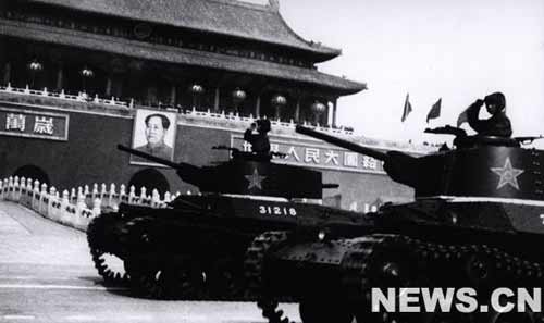 中華人民共和國(guó)第一屆國(guó)慶節(jié)慶祝大會(huì),今天在北京天安門前人民廣場(chǎng)舉行。慶祝大會(huì)中進(jìn)行了人民解放軍陸空海軍各兵種部隊(duì)的盛大檢閱,和首都各階層人民的盛大示威。今天參加這個(gè)慶祝大會(huì)的共四十余萬人。