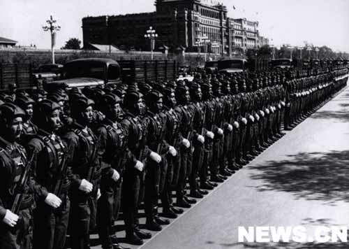 我們偉大祖國萬里海疆的保衛(wèi)者--海軍軍官和水兵們列隊(duì)通過天安門廣場。他們當(dāng)中,有擊沉、擊傷敵艦船一百多艘、俘獲五十艘的東海艦隊(duì)水兵;還有來自福建前線的水兵,他們?cè)谌ツ昵锾斓膬蓚(gè)月里,曾把二十多艘蔣軍艦艇埋葬在臺(tái)灣海峽。我們祖國"有海無防"的時(shí)代一去不復(fù)返了。人民海軍已經(jīng)是一支擁有大量水面艦艇、水下潛艇和海軍航空兵、海岸炮兵等各兵種組成的堅(jiān)強(qiáng)的海防力量。