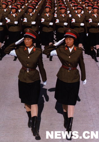 英姿颯爽的女衛(wèi)生兵是建國以來第一次出現(xiàn)在閱兵序列中。第七排的排頭兵是朝鮮族女戰(zhàn)士康輝。1957年國慶節(jié),她的父親參加了首都的閱兵式。現(xiàn)在,她又成為第一批受閱女兵的一員,真是幸福的兩代人。觀禮臺(tái)上,來自邊疆的少數(shù)民族觀禮代表們知道女衛(wèi)生兵方隊(duì)中還有滿、蒙古、回、壯、彝、鄂溫克、達(dá)斡爾族姐妹,高興地向女兵方隊(duì)鼓掌、致意。